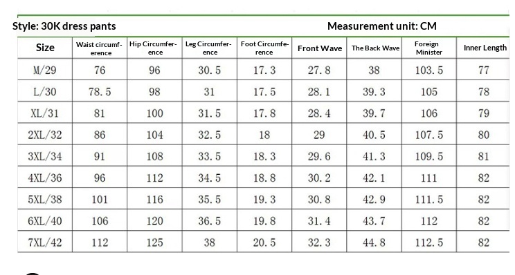 2. Bitte überprüfen Sie die Größentabelle sorgfältig, bevor Sie den Artikel kaufen. Wenn Sie sich bei der Auswahl der Größe unsicher sind, wenden Sie sich bitte an unseren Kundenservice.